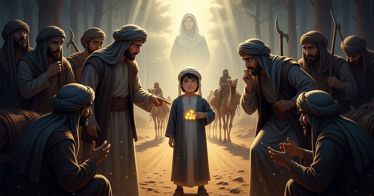 এই কাফেলার দল একটি বনের ভিতর দিয়ে যাচ্ছিলো। হঠাৎ এগিয়ে এলো একদল ডাকাত, তারা পুরো  কাফেলাকে  ঘিরে ধরল  এবং সকল যাত্রীর কাছ থেকে সমস্ত টাকা-পয়সা আর দামি দামি জিনিস গুলো কেড়ে নিতে শুরু করল।