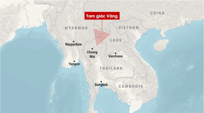 ১৯৭১ সালে মার্কিন পররাষ্ট্র দপ্তরের একজন কর্মকর্তা এই অঞ্চলটির নামকরণ করেন গোল্ডেন ট্রায়াঙ্গেল’। মিয়ানমার, লাওস এবং থাইল্যান্ডের সীমান্তে অবস্থিত এই অঞ্চলটির আনুমানিক আয়তন ৯ লক্ষ ৫০ হাজার বর্গকিলোমিটার। তিনটি দেশের সীমান্ত একত্রিত হয়ে ত্রিভুজ আকৃতির হওয়ায় একে “গোল্ডেন ট্রায়াঙ্গেল” বলা হয়।